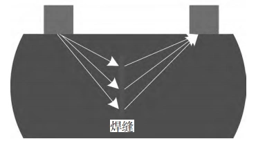 Let the two probes be denoted as A and B, with a spacing of L, and let the ultrasonic wave propagation speed in the steel pipe be M. The distance d between the weld defect and the detection surface can then be calculated as follows: